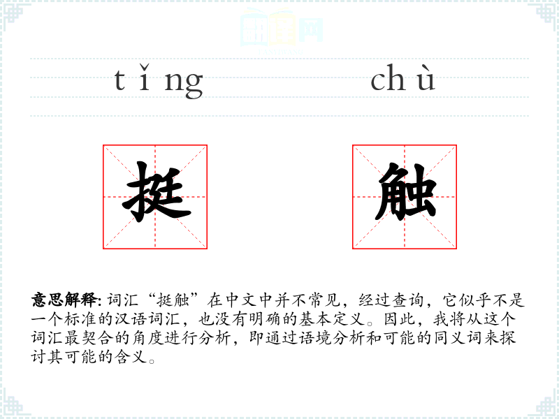 由于“挺触”不是一个标准词汇,我们无法给出确切的字面意思和基本含义。