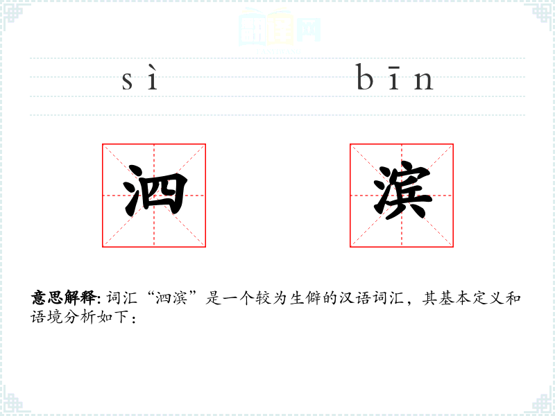 词汇“泗滨”是一个较为生僻的汉语词汇,其基本定义和语境分析如下: