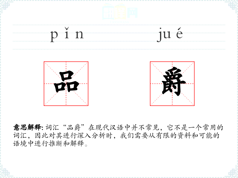 词汇“品爵”在现代汉语中并不常见,它不是一个常用的词汇,因此对其进行深入分析时,我们需要从有限的资料和可能的语境中进行推断和解释。
