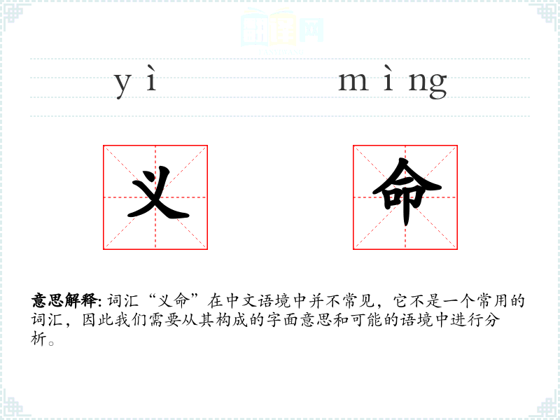 词汇“义命”在中文语境中并不常见,它不是一个常用的词汇,因此我们需要从其构成的字面意思和可能的语境中进行分析。