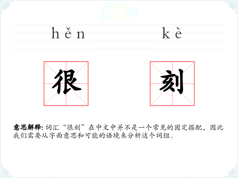 “很”是一个程度副词,用来加强形容词或副词的程度,表示“非常”或“极其”。 “刻”可以是一个动词,表示雕刻或刻画,也可以是一个形容词,表示刻板或不灵活。