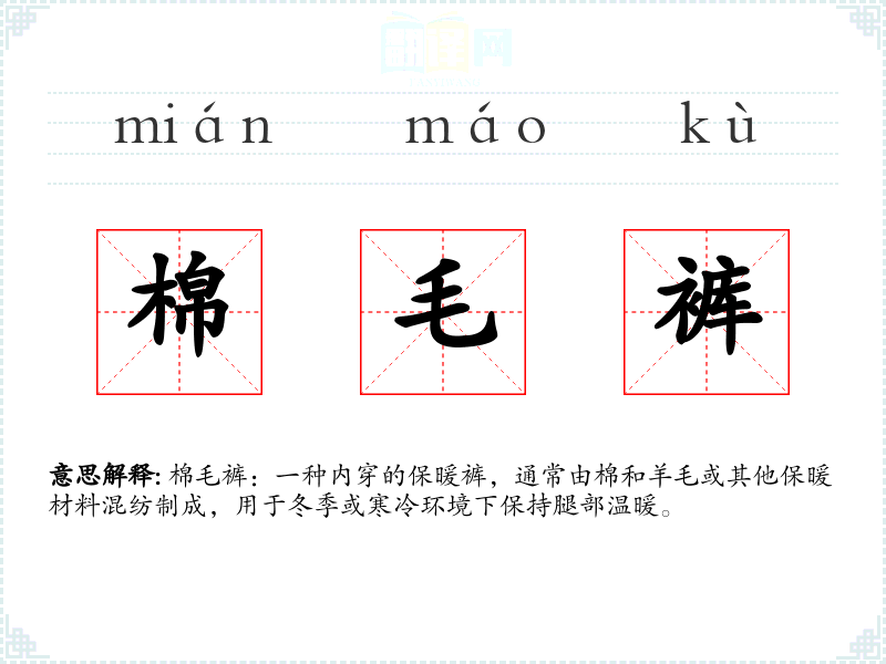 - 同义词:保暖裤、毛裤、棉裤