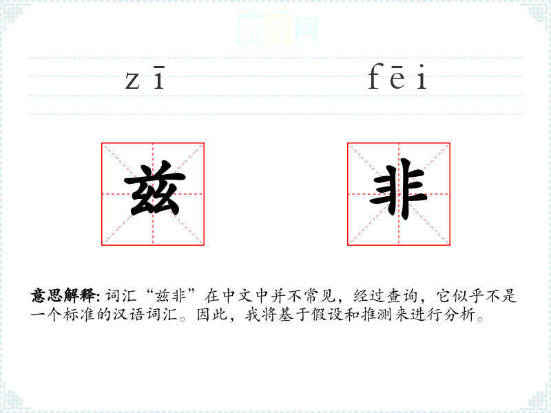 词汇“兹非”在中文中并不常见,经过查询,它似乎不是一个标准的汉语词汇。因此,我将基于假设和推测来进行分析。
