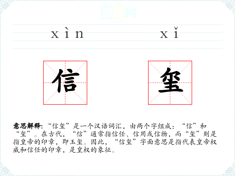 - 反义词:无(由于“信玺”特指**的印章,没有直接的反义词)