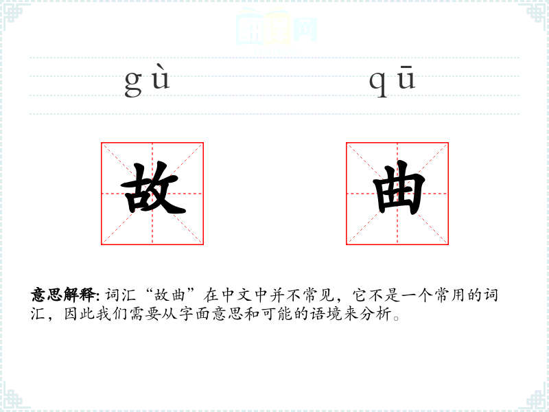 词汇“故曲”在中文中并不常见,它不是一个常用的词汇,因此我们需要从字面意思和可能的语境来分析。
