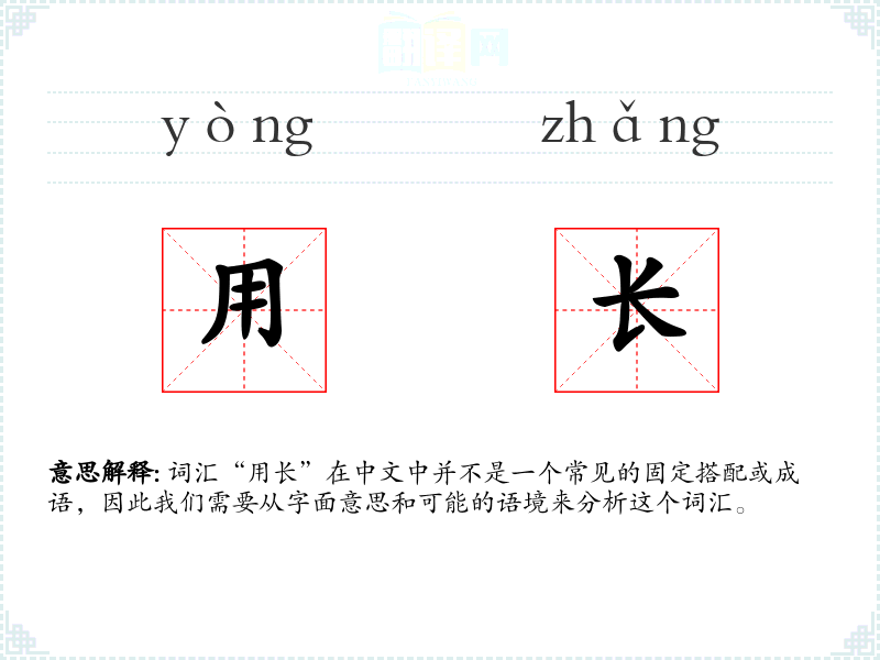 词汇“用长”在中文中并不是一个常见的固定搭配或成语,因此我们需要从字面意思和可能的语境来分析这个词汇。