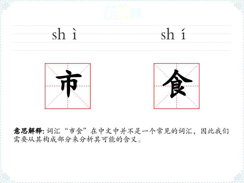 词汇“市食”在中文中并不是一个常见的词汇,因此我们需要从其构成部分来分析其可能的含义。