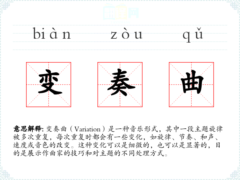 "变奏曲"的意思解释、变奏曲是什么意思由翻译网汉语词典查词提供。