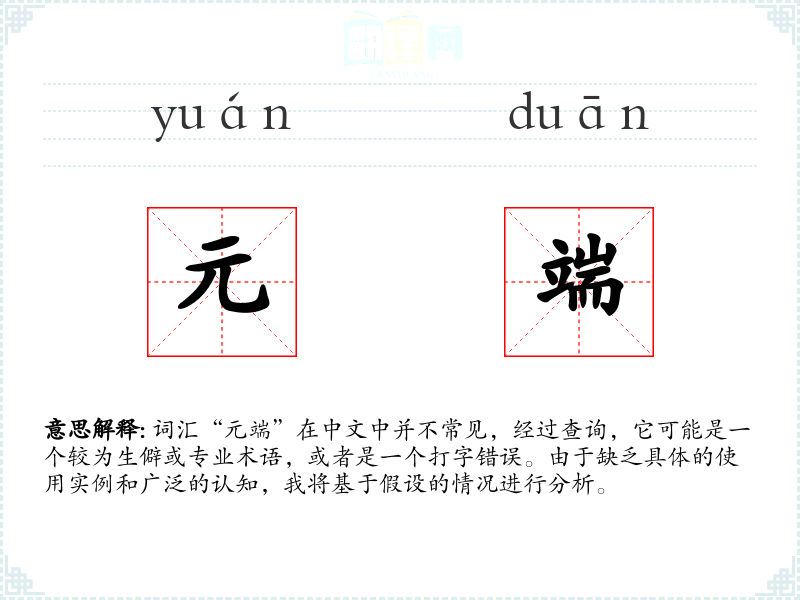 词汇“元端”在中文中并不常见,经过查询,它可能是一个较为生僻或专业术语,或者是一个打字错误。由于缺乏具体的使用实例和广泛的认知,我将基于假设的情况进行分析。