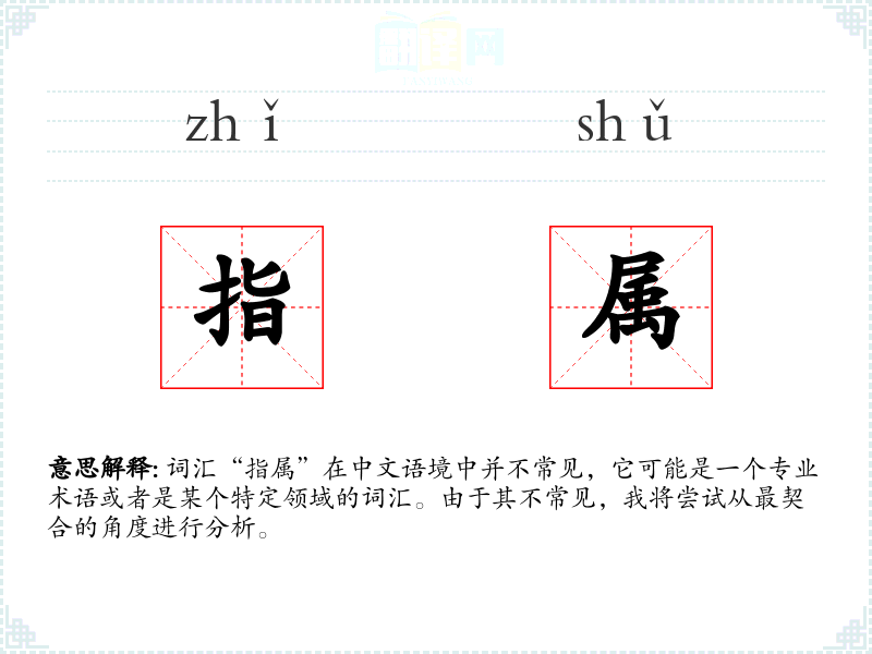 词汇“指属”在中文语境中并不常见,它可能是一个专业术语或者是某个特定领域的词汇。由于其不常见,我将尝试从最契合的角度进行分析。