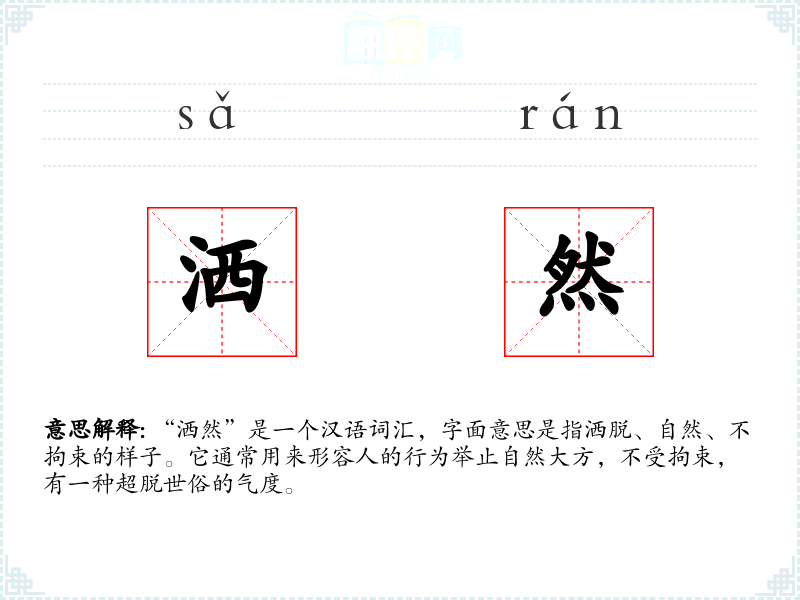 通过对“洒然”的深入学,我更加理解了这个词所蕴含的自由和超脱的意味。在语言学和表达中,这个词可以帮助我更准确地表达那些不受拘束、自然大方的情感和态度。
