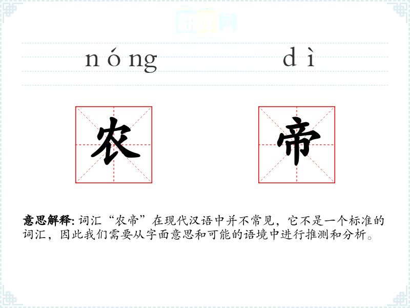 词汇“农帝”在现代汉语中并不常见,它不是一个标准的词汇,因此我们需要从字面意思和可能的语境中进行推测和分析。