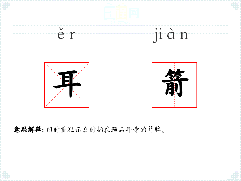 旧时重犯示众时插在颈后耳旁的箭牌。