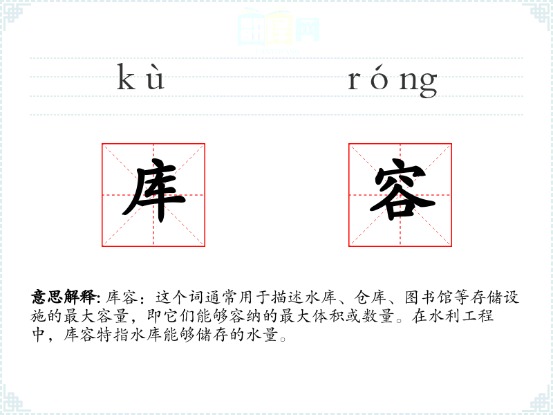 "库容"的意思解释、库容是什么意思由翻译网汉语词典查词提供。
