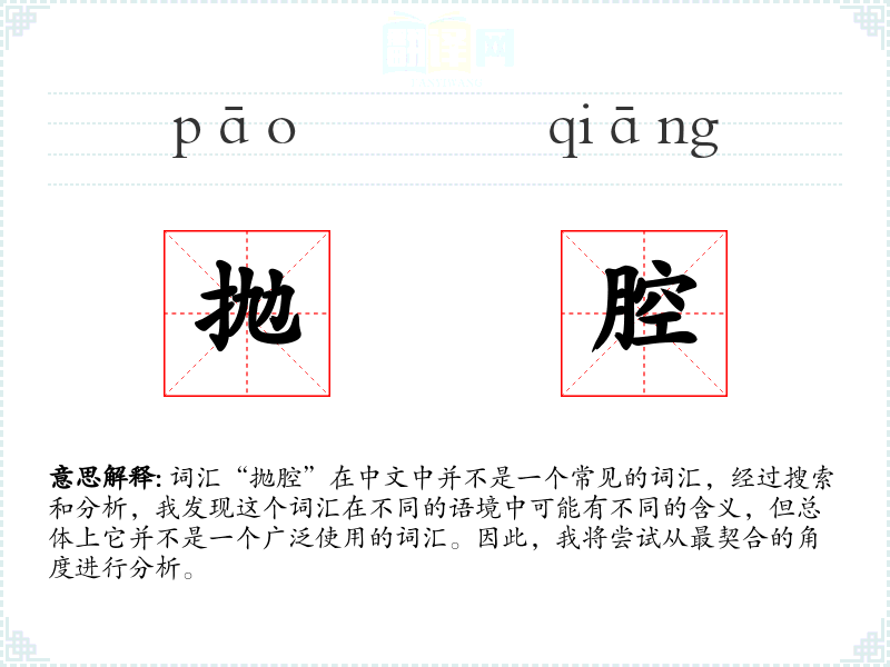 “抛腔”这个词汇的字面意思并不明确,它可能是一个方言词汇或者是某个特定领域的术语。在没有更多信息的情况下,我们无法给出一个确切的基本定义。