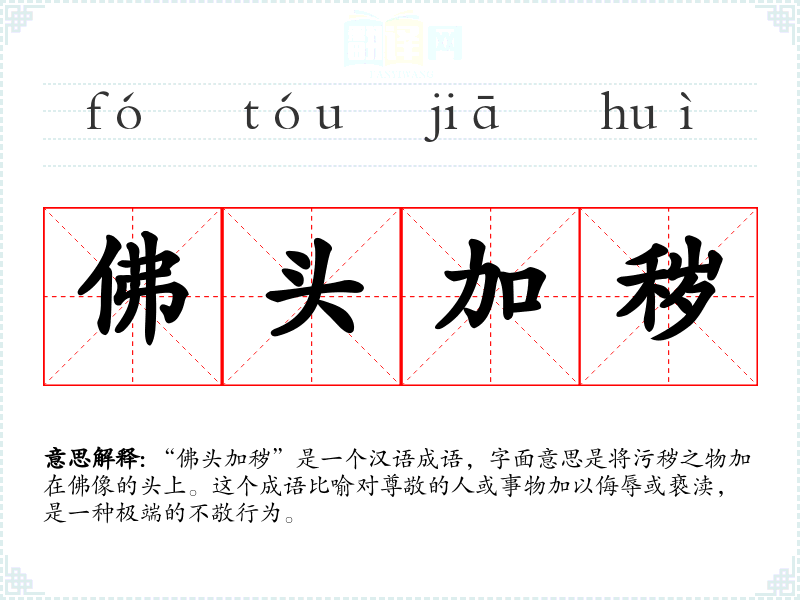 在传统文化中,有着深厚的文化底蕴,因此“佛头加秽”这个成语在社会中具有特殊的文化意义,强调对和文化的尊重。