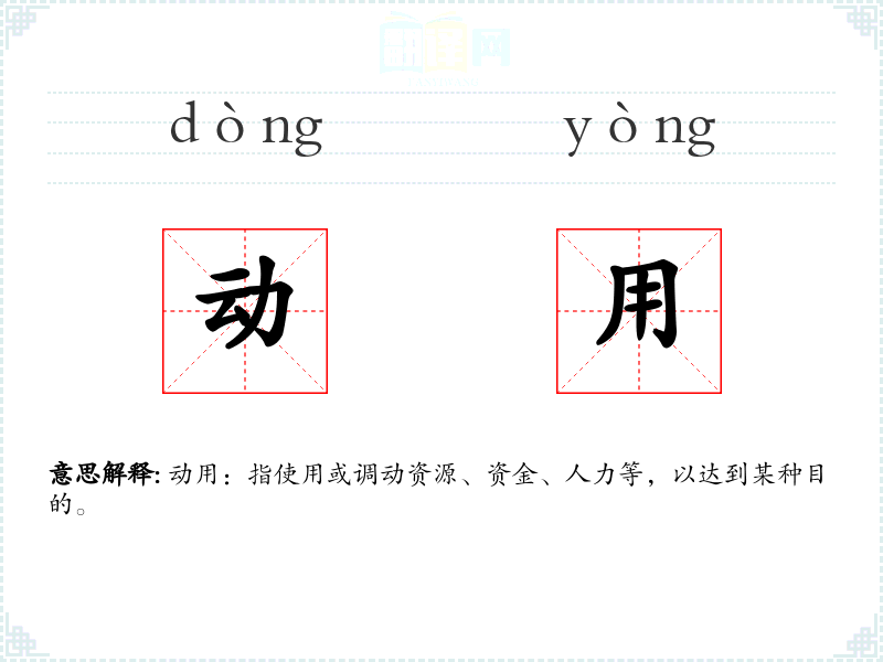 动用:指使用或调动资源、资金、人力等,以达到某种目的。