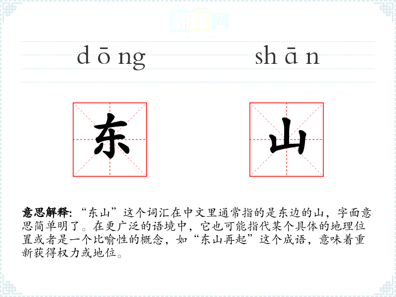 "东山"的意思解释、东山是什么意思由翻译网汉语词典查词提供。