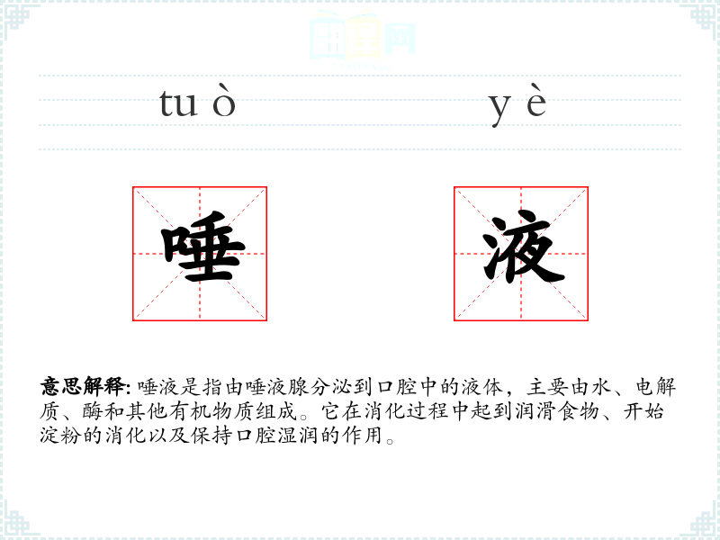 - 同义词:口水、唾沫