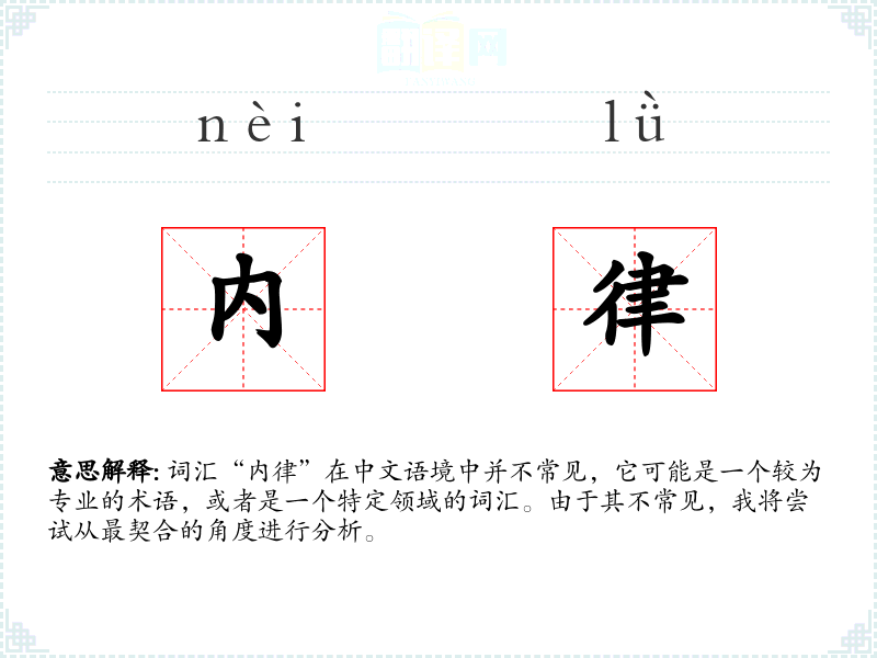 词汇“内律”在中文语境中并不常见,它可能是一个较为专业的术语,或者是一个特定领域的词汇。由于其不常见,我将尝试从最契合的角度进行分析。