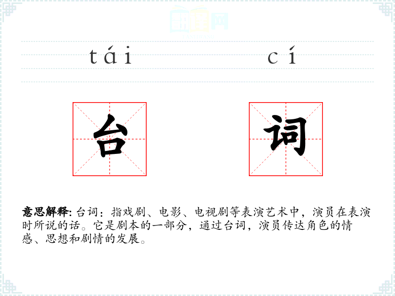 "台词"的意思解释、台词是什么意思由翻译网汉语词典查词提供。