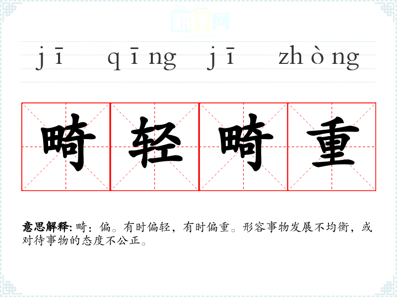 畸:偏。有时偏轻,有时偏重。形容事物发展不均衡,或对待事物的态度不公正。
