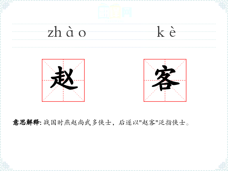 战国时燕赵尚武多侠士,后遂以"赵客"泛指侠士。