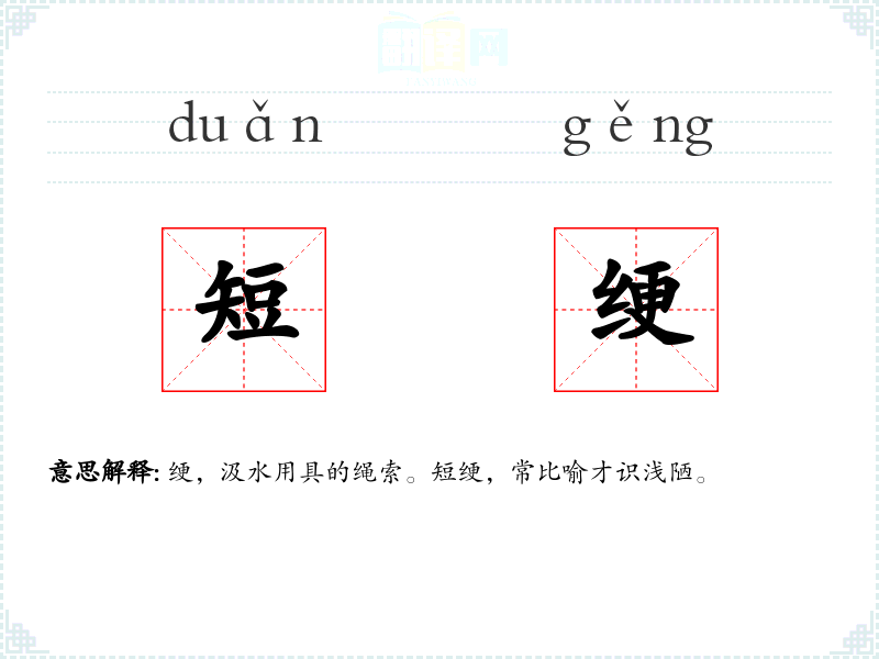 绠,汲水用具的绳索。短绠,常比喻才识浅陋。