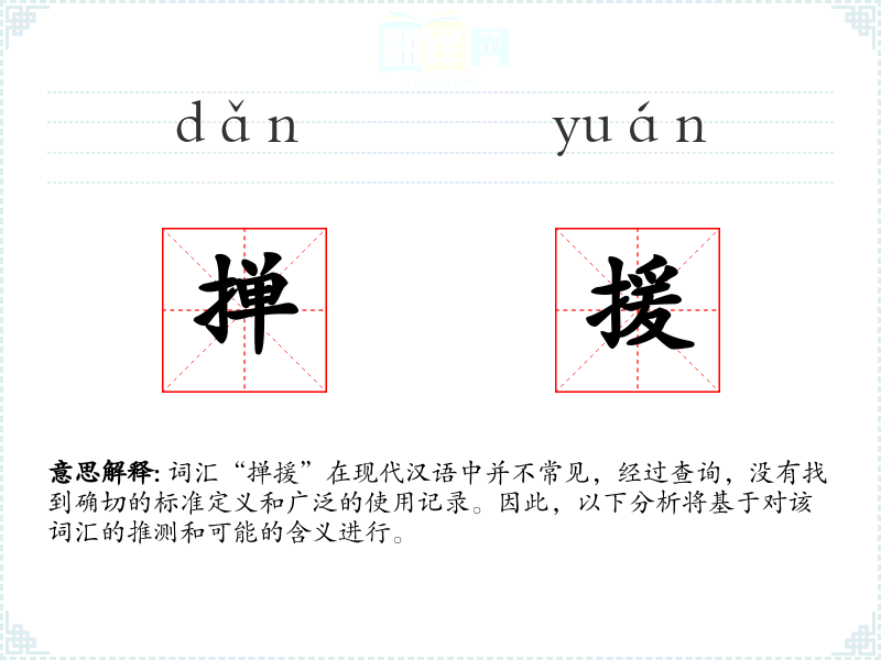 由于“掸援”不是一个常用词汇,其词源和历史演变不详。可能是某个特定地区或社群的方言词汇,或者是某个作者创造的新词。