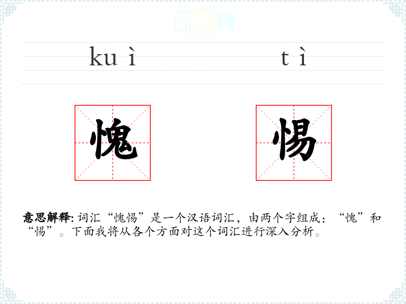 词汇“愧惕”是一个汉语词汇,由两个字组成:“愧”和“惕”。下面我将从各个方面对这个词汇进行深入分析。
