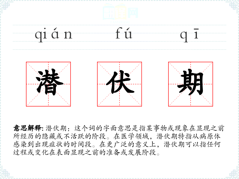 "潜伏期"的意思解释、潜伏期是什么意思由翻译网汉语词典查词提供。