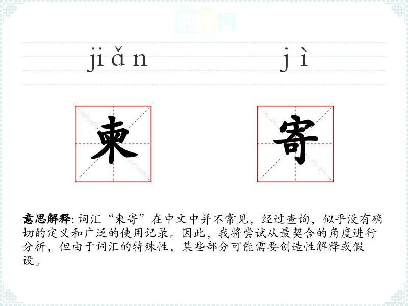 词汇“柬寄”在中文中并不常见,经过查询,似乎没有确切的定义和广泛的使用记录。因此,我将尝试从最契合的角度进行分析,但由于词汇的特殊性,某些部分可能需要创造性解释或假设。