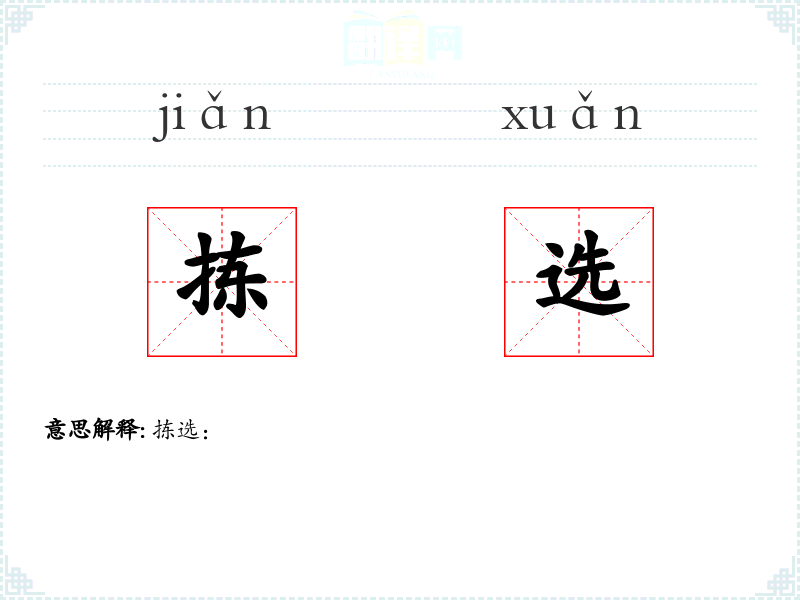 - 理解:拣选是一个多功能的词汇,适用于各种选择场景,强调慎重和优选。