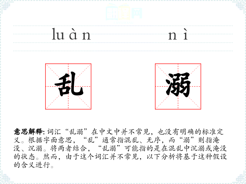 由于“乱溺”不是一个标准词汇,其词源和演变不明确。可能是由“乱”和“溺”两个字组合而成,用以形容一种极端的混乱状态。