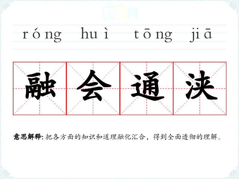 把各方面的知识和道理融化汇合,得到全面透彻的理解。