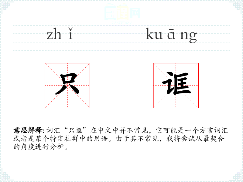 词汇“只诓”在中文中并不常见,它可能是一个方言词汇或者是某个特定社群中的用语。由于其不常见,我将尝试从最契合的角度进行分析。