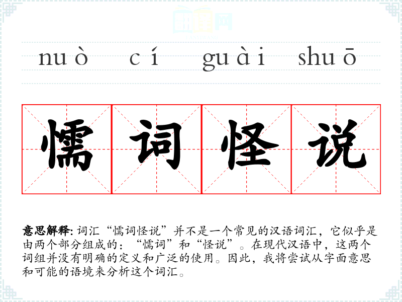 "懦词怪说"的意思解释、懦词怪说是什么意思由翻译网汉语词典查词提供。