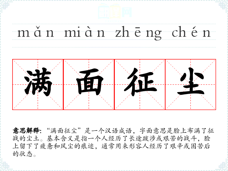 “满面征尘”这个成语源自古代对战士或旅人形象的描述,随着时间的推移,其含义逐渐扩展到形容任何经历了艰辛的人。在古代文学中,这个词汇常用来增强人物形象的立体感和历史感。