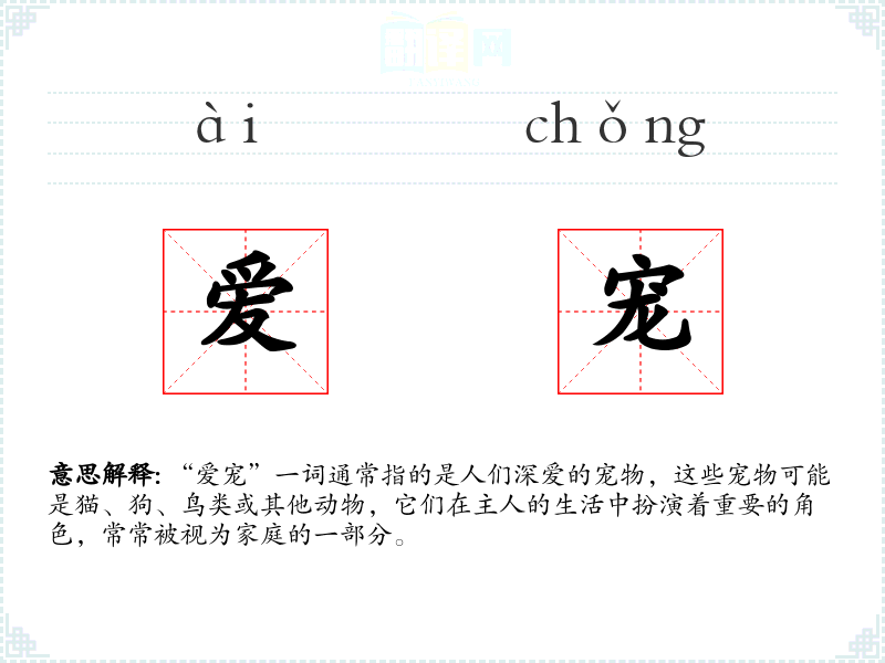 “爱宠”一词由“爱”和“宠”两个字组成,其中“爱”表示深厚的感情,“宠”则指特别喜爱和照顾。这个词在中文中历史悠久,但随着宠物文化的兴起,其使用频率和含义有所扩展。