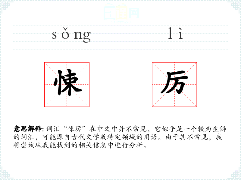 词汇“悚厉”在中文中并不常见,它似乎是一个较为生僻的词汇,可能源自古代文学或特定领域的用语。由于其不常见,我将尝试从我能找到的相关信息中进行分析。