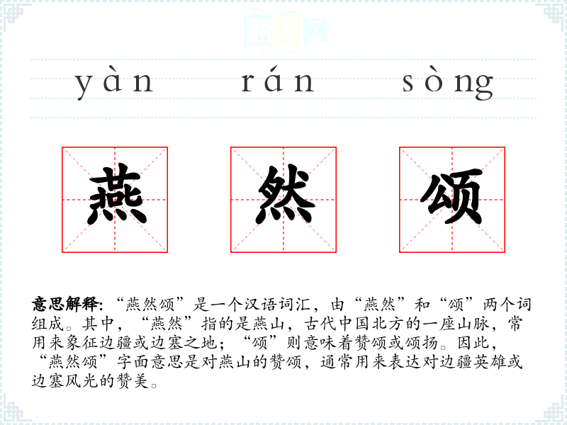 - 反义词:无(由于“燕然颂”特指对边疆的赞美,反义词不明显)