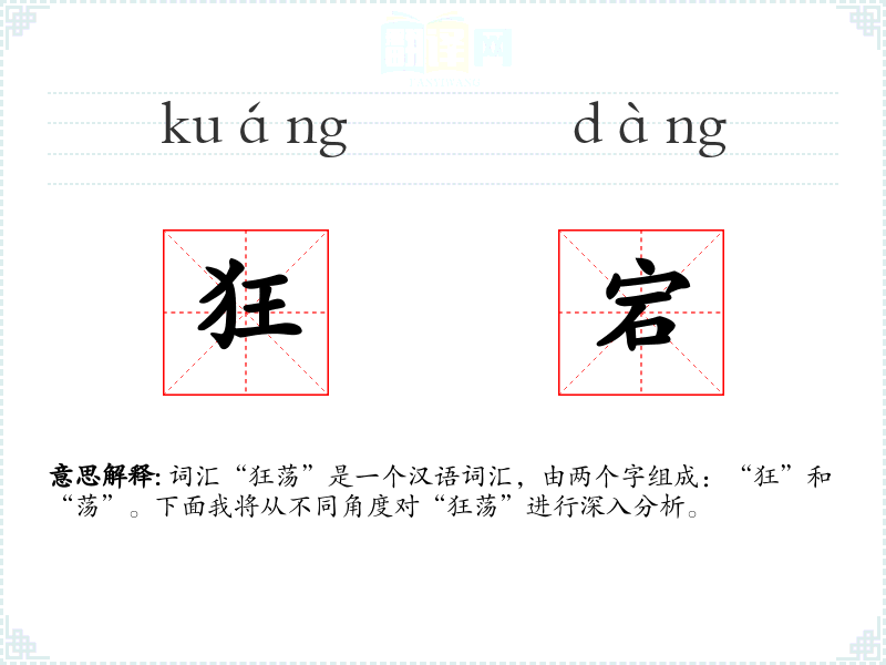 词汇“狂荡”是一个汉语词汇,由两个字组成:“狂”和“荡”。下面我将从不同角度对“狂荡”进行深入分析。