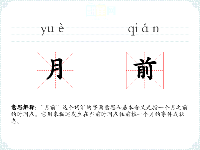 "月前"的意思解释、月前是什么意思由翻译网汉语词典查词提供。