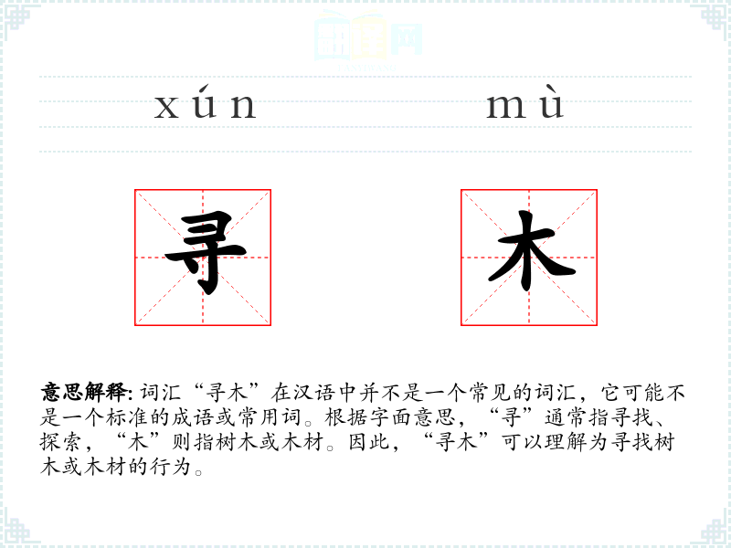 - 词源:“寻”和“木”都是古代汉语中的常用词汇,组合起来形成一个新的词汇。