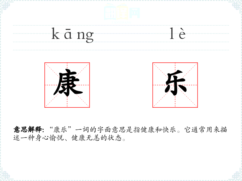 “康乐”一词的字面意思是指健康和快乐。它通常用来描述一种身心愉悦、健康无恙的状态。