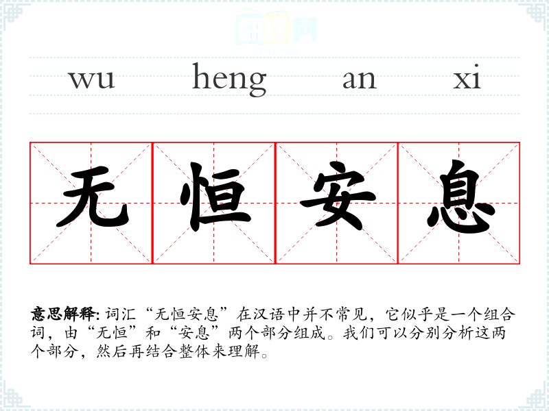 词汇“无恒安息”在汉语中并不常见,它似乎是一个组合词,由“无恒”和“安息”两个部分组成。我们可以分别分析这两个部分,然后再结合整体来理解。