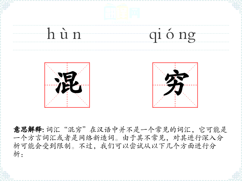 词汇“混穷”在汉语中并不是一个常见的词汇,它可能是一个方言词汇或者是网络新造词。由于其不常见,对其进行深入分析可能会受到限制。不过,我们可以尝试从以下几个方面进行分析: