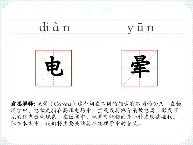 "电晕"的意思解释、电晕是什么意思由翻译网汉语词典查词提供。