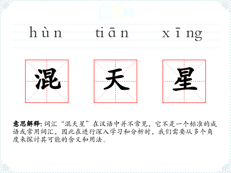 词汇“混天星”在汉语中并不常见,它不是一个标准的成语或常用词汇,因此在进行深入学习和分析时,我们需要从多个角度来探讨其可能的含义和用法。