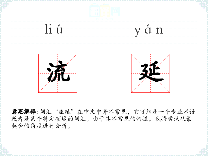 词汇“流延”在中文中并不常见,它可能是一个专业术语或者是某个特定领域的词汇。由于其不常见的特性,我将尝试从最契合的角度进行分析。